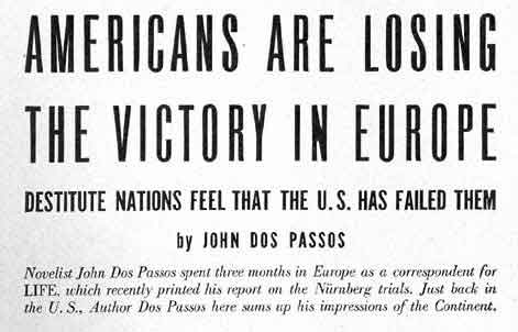 ![]() We are in a cabin deep down below decks on a Navy ship jam-packed with troops that’s pitching and creaking its way across the Atlantic in a winter gale. There is a man in every bunk. There’s a man wedged into every corner. There’s a man in every chair. The air is dense with cigarette smoke and with the staleness of packed troops and sour wool. “Don’t think I’m sticking up for the Germans,” puts in the lanky young captain in the upper berth, “but…” “To hell with the Germans,” says the broad-shouldered dark lieutenant. “It’s what our boys have been doing that worries me.” The lieutenant has been talking about the traffic in Army property, the leaking of gasoline into the black market in France and Belgium even while the fighting was going on, the way the Army kicks the civilians around, the looting. “Lust, liquor and loot are the soldier’s pay,” interrupts a red-faced major. The lieutenant comes out with his conclusion: “Two wrongs don’t make a right.” You hear these two phrases again and again in about every bull session on the shop. “Two wrongs don’t make a right” and “Don’t think I’m sticking up for the Germans, but….” The troops returning home are worried. “We’ve lost the peace,” men tell you. “We can’t make it stick.” A tour of the beaten-up cities of Europe six months after victory is a mighty sobering experience for anyone. Europeans. Friend and foe alike, look you accusingly in the face and tell you how bitterly they are disappointed in you as an American. They cite the evolution of the word “liberation.” Before the Normandy landings it meant to be freed from the tyranny of the Nazis. Now it stands in the minds of the civilians for one thing, looting. You try to explain to these Europeans that they expected too much. They answer that they had a right to, that after the last was America was the hope of the world. They talk about the Hoover relief, the work of the Quakers, the speeches of Woodrow Wilson. They don’t blame us for the fading of that hope. But they blame us now. Never has American prestige in Europe been lower. People never tire of telling you of the ignorance and rowdy-ism of American troops, of out misunderstanding of European conditions. They say that the theft and sale of Army supplies by our troops is the basis of their black market. They blame us for the corruption and disorganization of UNRRA. They blame us for the fumbling timidity of our negotiations with the Soviet Union. They tell us that our mechanical de-nazification policy in Germany is producing results opposite to those we planned. “Have you no statesmen in America?” they ask. The skeptical French pressYet whenever we show a trace of positive leadership I found Europeans quite willing to follow our lead. The evening before Robert Jackson’s opening of the case for the prosecution in the Nurnberg trial, I talked to some correspondents from the French newspapers. They were polite but skeptical. They were willing enough to take part in a highly publicized act of vengeance against the enemy, but when you talked about the usefulness of writing a prohibition of aggressive war into the law of nations they laughed in your face. The night after Jackson’s nobly delivered and nobly worded speech I saw then all again. They were very much impressed. Their manner had even changed toward me personally as an American. Their sudden enthusiasm seemed to me typical of the almost neurotic craving for leadership of the European people struggling wearily for existence in the wintry ruins of their world. The ruin this war has left in Europe can hardly be exaggerated. I can remember the years after the last war. Then, as soon as you got away from the military, all the little strands and pulleys that form the fabric of a society were still knitted together. Farmers took their crops to market. Money was a valid medium of exchange. Now the entire fabric of a million little routines has broken down. No on can think beyond food for today. Money is worthless. Cigarettes are used as a kind of lunatic travesty on a currency. If a man goes out to work he shops around to find the business that serves the best hot meal. The final pay-off is the situation reported from the Ruhr where the miners are fed at the pits so that they will not be able to take the food home to their families. “Well, the Germans are to blame. Let them pay for it. It’s their fault,” you say. The trouble is that starving the Germans and throwing them out of their homes is only producing more areas of famine and collapse. One section of the population of Europe looked to us for salvation and another looked to the Soviet Union. Wherever the people have endured either the American armies or the Russian armies both hopes have been bitterly disappointed. The British have won a slightly better reputation. The state of mind in Vienna is interesting because there the part of the population that was not actively Nazi was about equally divided. The wealthier classes looked to America, the workers to the Soviet Union. The Russians came first. The Viennese tell you of the savagery of the Russian armies. They came like the ancient Mongol hordes out of the steppes, with the flimsiest supply. The people in the working-class districts had felt that when the Russians came that they at least would be spared. But not at all. In the working-class districts the tropes were allowed to rape and murder and loot at will. When victims complained, the Russians answered, “You are too well off to be workers. You are bourgeoisie.” When Americans looted they took cameras and valuables but when the Russians looted they took everything. And they raped and killed. From the eastern frontiers a tide of refugees is seeping across Europe bringing a nightmare tale of helpless populations trampled underfoot. When the British and American came the Viennese felt that at last they were in the hands of civilized pe